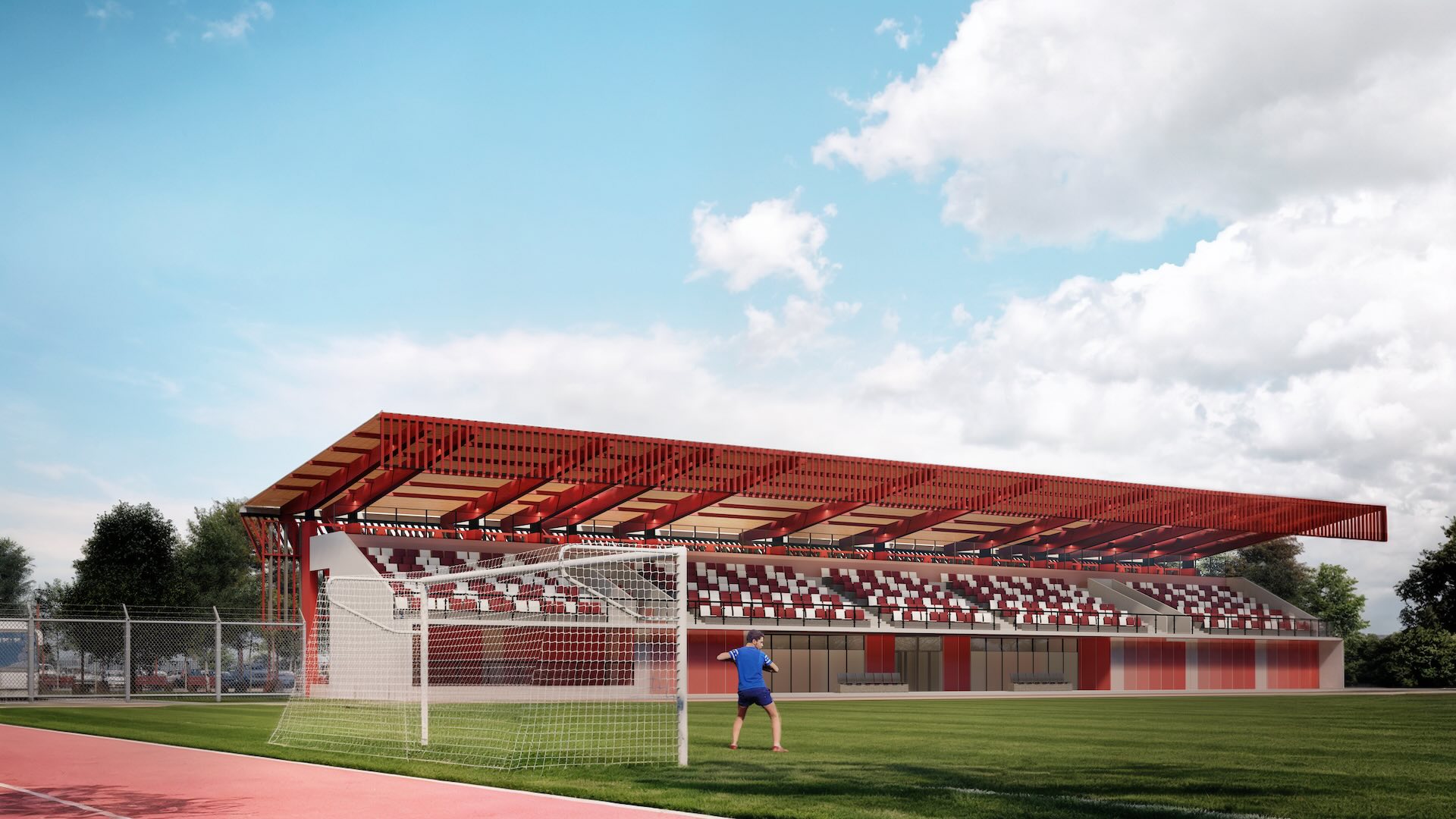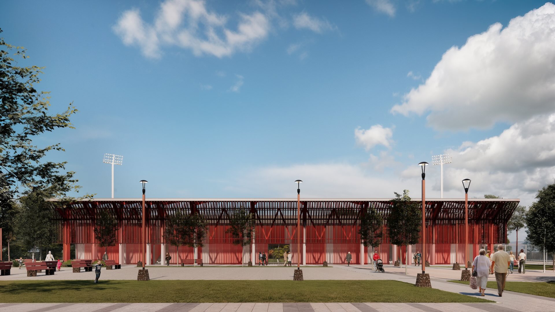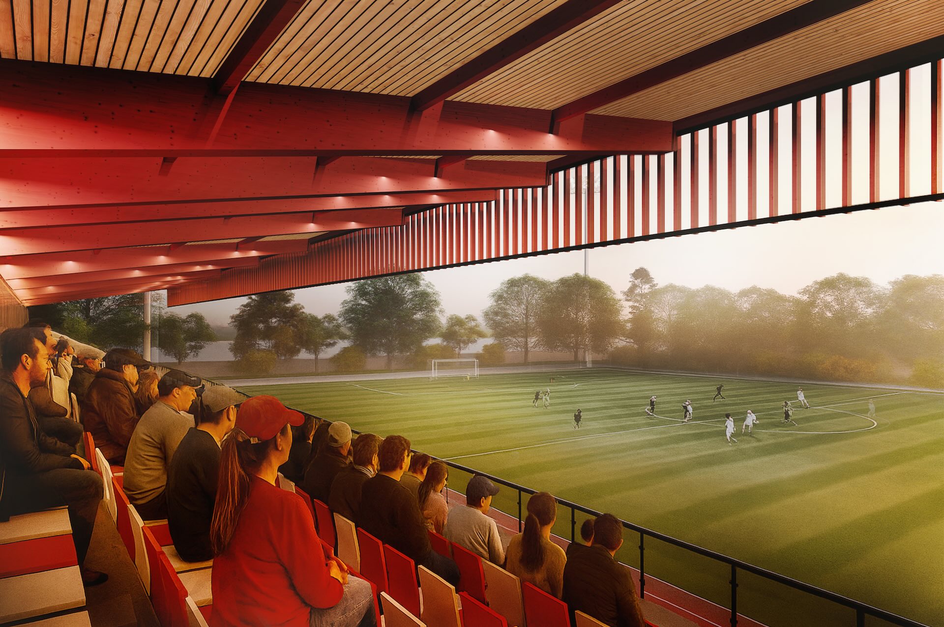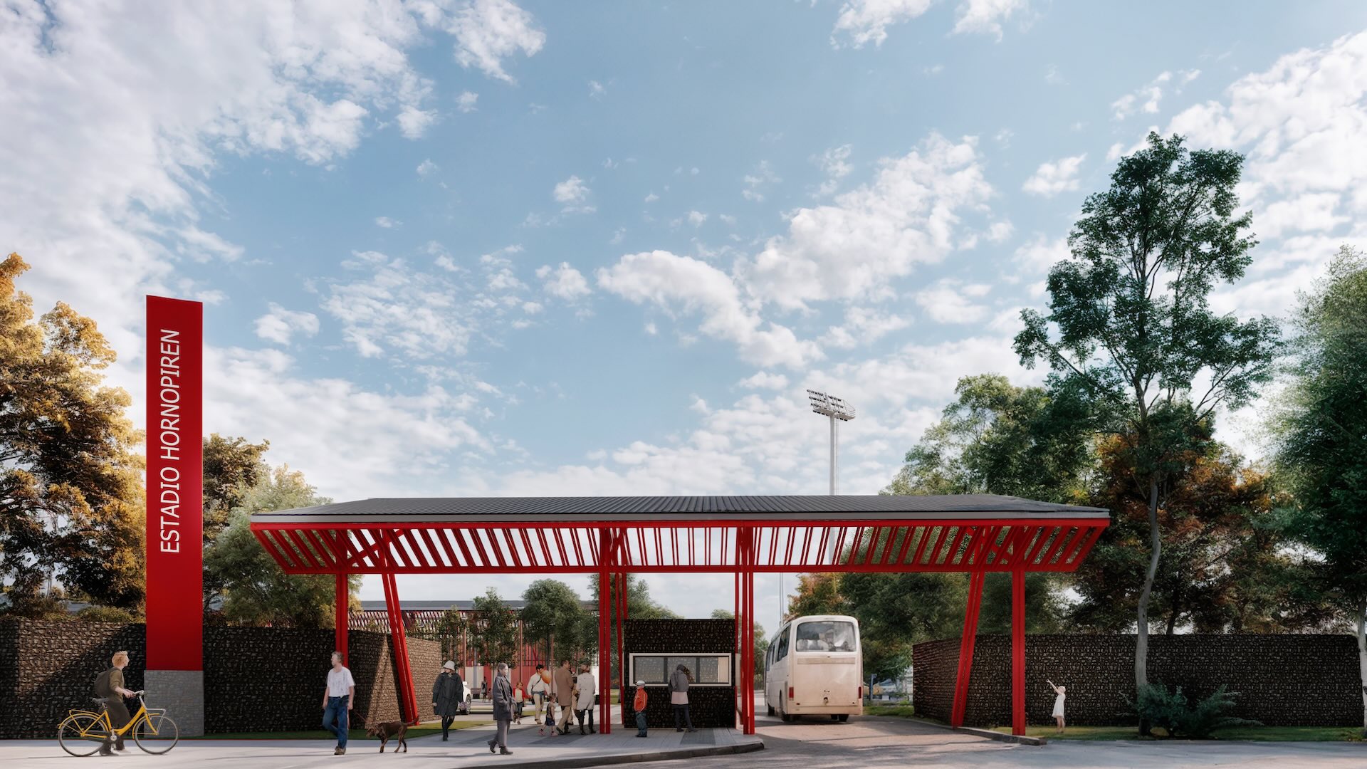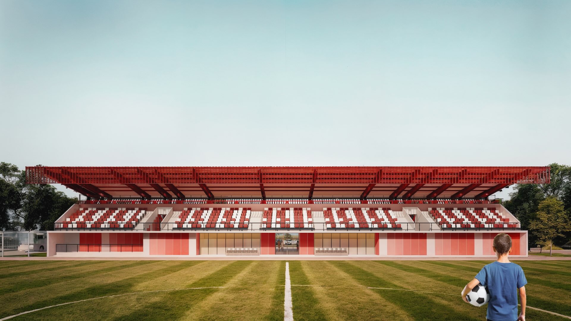 ESTADIO HORNOPIRÉNDestino DeportivoLugar: Hornopirén, Región de Los LagosFecha: 2025Superficie edificio: 468 m2Superficie terreno: 27.104 m2